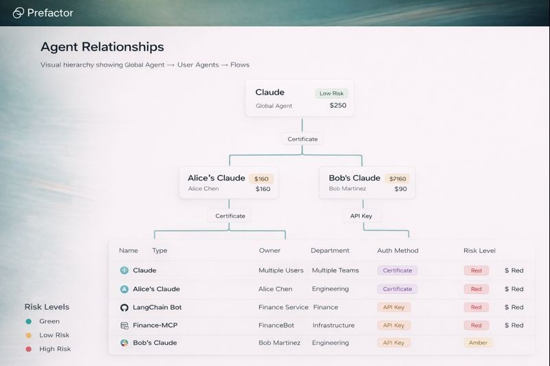Every agent has an identity. Every action is authenticated. Every permission is scoped. Prefactor brings the same governance principles that work for humans to your AI agents.