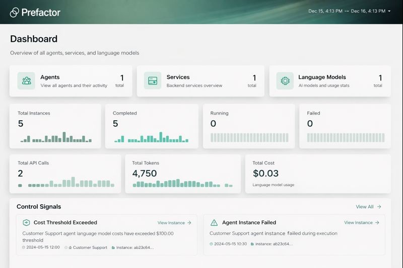 Track every agent in real-time. See which agents are active, what they're accessing, and where issues emerge—before they become incidents. Gain complete visibility through our control plane dashboard.